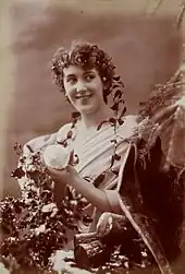 Campton appeared in a number of 'breeches roles',[8] including in the revue Entente Cordiale (1905) by Robert de Flers, in which she played a British Lord opposite Mlle Marie Marville as Madame de France at the Théâtre des Capucines. During 1904 to 1907 she was at the Moulin Rouge, in 1904 in the revue La Revue du Moulin with music by Gustave Goublier, and in 1907 in the operetta Le toreador. In 1906 she was in Une Revue au Palais-Royal, while in 1907 she acted in the comedy Souper d’Adieu at the Théâtre des Capucines. From 1907 to 1910 she was in the annual Folies Bergère revue by Flers. With Louis Maurel she sang 'Entrevue de Marienbad' at the Folies Bergère, which was recorded and which betrays her English accent while singing in French. In about 1908 Campton appeared in the revue Pomme d’amour while in 1911 she was at the Théâtre des Ambassadeurs. Between October 1911 and February 1912 she played alongside René Hervil the Théâtre des Capucines in Et voilà! by Robert Dieudonné and Gently! by Hugues Delorme. In the following year he would cast her as the lead in his Maud series of films.[8] During 1911 to 1913 Campton was at La Cigale in La revue sans culotte (1911); the comedy Miss Alice des P.T.T. by Tristan Bernard (1912-1913) and in En scene… mon president (1913), both with Maurice Claudius as her on-stage partner. In 1913 she performed in revues at the Théâtre Marigny, including in La revue de Marigny by André Barde and Michel-Antoine Carré.[1] From 1912 to 1915 she was on film sets for the studio Urban-Eclipse in Paris where she created the title role in the Maud series under the direction of René Hervil. Maud was one of the few comic series of the time in France to stage a female main character.[8]