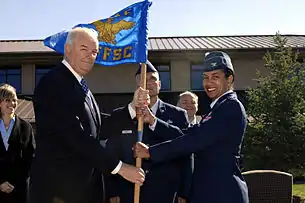 The Financial Services Center was opened on 14 September 2007 by Secretary of the Air Force Michael Wynne. The ribbon-cutting ceremony was attended by United States Senator John Thune, Congresswoman Stephanie Herseth Sandlin, senior Air Force official, and Rapid City civic leaders. The center's first commander was Colonel Judy Perry.[1]