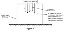 Air doors can be equipped with or without heaters to heat the air. The fan must be powerful enough to generate a jet of air that can reach the floor. There are some studies in the scientific literature that present analytical methods to predict the sealing efficiency obtained with an air curtain.[2]