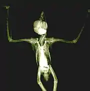Sometimes, the term airsacculitis is used for bacterial infection of the laryngeal air sacs in mammals, the most commonly primates.[3][19] Such airsacculitis in non-human primates often leads to various chronic respiratory diseases.[3] The infected air sacs thicken. Under the microscope one can detect hyperplasia or hypertrophy of epithelium, cell necrosis, fibrosis, cellular infiltrates, as well as an occurrence of bacterial colonies. Among typical symptoms of the disease are halitosis (bad breath), coughing, rhinorrhea (nasal discharge), depression, anorexia and weight loss.[19]
