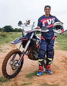 Aishwarya Pissay (born 14 August 1995) is an Indian circuit and off-road motorcycle racer. She has become the first-ever Indian motorsports athlete to win a world title. The TVS talent participated at the FIM Bajas World Cup and secured the 1st place in the women's category and 2nd in the junior's category. She is the first Indian woman to win 7 FMSCI National titles, including 6 consecutive Indian National Rally Championship in two-wheelers from 2017.[1] She started with Circuit Racing winning Honda one-make and TVS one-make titles and went on to win multiple Indian National Rally Championship (INRC - 2w) titles before moving to bigger cross-country rallies.