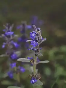 It grows as a herbaceous shrub with a stem that bears flowers arising out of a loose rosette of leaves. Each leaf is obovate or elliptic and has a wedge-shaped base and is 3–12 cm long and 0.8–3.5 cm wide. The leaf is covered in fine hair, more prominent along the midrib. The purple flowers appear predominantly in spring but can appear at any time of year.[3] The plants live for around two to three years.[4] Ajuga australis grows on clay soils that are medium to high in nutrients, either on Wianamatta Shale, basalt, or alluvial quartzite.[4]
