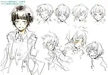 Wanting the series to be "anti-moe", the production team avoided showing Akane removing her clothes, and instead featured scenes where Kogami would remove his.[7] Akane's physical appearance was designed by manga artist Akira Amano. Due to her and Kogami being the lead characters, Kyoji Asano felt like he could care about them.[8] Director Naoyoshi Shiotani shared similar feelings, stating he wanted Akane's traits to balance with Kogami's as they are the main duo of Psycho-Pass. He further stated that one of her original characteristics was her "masculine" traits despite of her gender. Since the character's creation, Shiotani had thoughts about what would her role be in the future, most notably regarding her imprisonment in Psycho-Pass 3.[9]