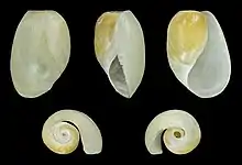The NLBIF lists a large number of synonyms in addition to the above; including: Bulla akera (Gmelin, J.F., 1791),[24] Bulla norwegica (Bruguière, J.G., 1789),[24] Bulla canaliculata (Olivi, 1792), Bulla resiliens (Donovan, E., 1801),[24] Bulla fragilis (Lamarck, J.B.P.A. de, 1822),[24] Akera flexilis (Brown, 1844), Bulla hanleyi (Adams A. in Sowerby G.B. II, 1850/1855),[24] Eucampe donovani (Leach, W.E., 1852),[24] Bulla elastica (Sandri & Danilo, 1856), Acera bullata var. nana (Jeffreys, 1867), Acera elegans (Locard, 1886), Bulla farrani (Norman, 1890), Bulla globosa (Cantraine, F.J., 1840),[24][25] Akera tenuis (Brusina, S., 1866)[24] and Akera farrani (Winckworth, R., 1932).[22][24][26][27]