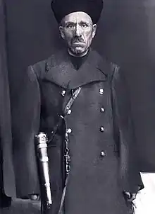 Akhmed Sosievich Khuchbarov[lower-alpha 1] (1894–1956) was an Ingush abrek (outlaw), guerilla fighter and warlord who led an Ingush resistance against the Soviet regime for 27 years up until his death in 1956. Akhmed made numerous operations and attacks on NKVD and KGB members, avenging the deported Ingush, thus being considered a national hero to the Ingush people.