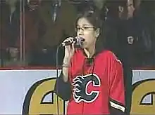 ![]() Performing at a Calgary Flames game | |