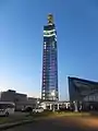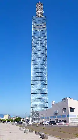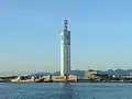 The Akita City Port Tower Selion (秋田市ポートタワーセリオン, Akitashi Pōto Tawā Serion)[4][5] is one of the landmarks in the city of Akita, Japan.[6] The sightseeing tower with 6,272 tempered glasses was completed in 1994. It is located in the Tsuchizaki District, Akita, Akita Prefecture, Japan. The steel tower is the tallest structure in the 3 northern Tohoku prefectures with its observation deck at 100 metres (328 ft) and its spire at 143.6 metres (471 ft). The viewing platform provides a 360-degree panorama of the city and the mountains of Oga Peninsula, Taiheizan, and Mt. Chokai are visible. Cable Networks Akita received the TV-U Yamagata broadcast from Takadateyama, Tsuruoka at this landmark in the past.[7]