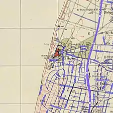 Al-Haram (El Haram ʿAly Ibn ʿAleim, also Sayyiduna Ali or Sidna Ali "sanctuary of ʿAli [Ibn ʿAleim]",[4] Hebrew: אל-חרם, Arabic: الحرم), was a Palestinian Arab village in the Jaffa Subdistrict,[5] in Mandatory Palestine. It was located 16 km (10 miles) north of Jaffa, adjacent to the ruins of the medieval walled city of Arsuf, and its extent was estimated to range between 9,653 and 11,698 dunams of which 5,150 were accounted for in the cadastral registrations.[5] It was depopulated during the 1948 war.