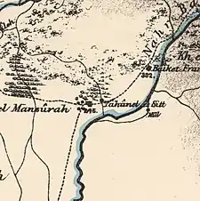 Al-Mansura (Mansoura) marked on John MacGregor's map. January 1869.