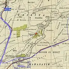 Today there are no Israeli settlements on village lands and the shrine of Shaykh al-Wayzi is the only remaining landmark.[4] Only rubble and grasses and trees remain, although the Zionists established the settlement of Mahanayim in 1939, which is located about 1.5 km southeast of where Al-Wayziyya was located.[4]