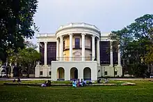 Al-Hamra Palace (Arabic: القصر الحمراء, romanized: al-Qaṣr al-Ḥamrāʾ), better known as the Red Palace (Arabic: القصر الأحمر, romanized: al-Qaṣr al-ʾĀḥmar) is a historic palace and a cultural landmark located in the al-Fouta neighborhood of Riyadh, Saudi Arabia. It was commissioned in 1943 by King Abdulaziz ibn Saud as a gift to his son, Saud bin Abdulaziz,[1] and served as the latter's main residence and workplace from its completion in 1948 until he moved to the al-Nassiriyah Palace in 1956. It is the first reinforced concrete structure in the history of Saudi Arabia and its layout and design were modeled after the historic British Residency building in Hyderabad, India.[2][3] It was opened to the general public in 2019 after being abandoned for almost 17 years.[4][5][6] Since 2022, the palace compound is owned by the Boutique Group, which is set to transform the building into a luxury hotel.