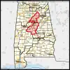 The district had a population of 66,111 as of the 1840 U.S. census, which made it the second least populous district in Alabama.[6] Neither Cullman County nor Etowah County existed at the time, so only the eastern portion of what today is Cullman County was in the district. In the case of St. Clair County, it appears that only about half of St. Clair County in 1843 was in the district. The district was redrawn in 1855. This was done in time for the election of representatives to the 34th Congress which was held August 6, 1855. The new boundaries put Cherokee County in the 6th district and removed St. Clair County. These boundaries remained in place until the Civil War.