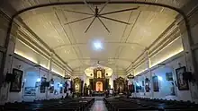 From 1849 to 1878, Jose Tornos continued the rebuilding of the new church. In 1857, the church was inaugurated built with stone walls, nipa roofing, a tabernacle and a niche for the church's patron, Saint Joseph. In 1860, Juan Alaminos y Vivar visited the town and in 1873, the town's name was changed into Alaminos in honor of the governor-general of the Philippines.[3][4][2]