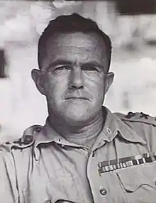 By the outbreak of the Second World War, Ramsay was an acting colonel commanding the 4th Divisional Artillery. On 13 October, he joined the newly formed Second Australian Imperial Force (AIF), and was placed in command of the 2/2nd Field Regiment.[2] This involved a step down in responsibility[3] but by October of the following year, he was a brigadier. When the division embarked to the Middle East, he was in charge of the artillery of the 9th Division. He saw action during the siege of Tobruk and, as a result of his conduct there, he was made a Commander of the Order of the British Empire. He also planned the artillery barrage that supported the 9th Division's actions on 30 October during the Second Battle of El Alamein. This required the co-ordination of 360 guns across fifteen regiments, and the outstanding success of his plan caught the attention of the artillery commander of the Eighth Army. He was awarded the Distinguished Service Order in 1943 as well as being mentioned in despatches.[2] He was well thought of by the commander of the 9th Division, Lieutenant General Leslie Morshead, who nominated Ramsay as his successor in the event he was wounded.[4]