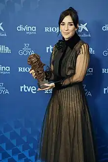 Ruiz de Azúa holding her Goya Award for Best New Director in 2023