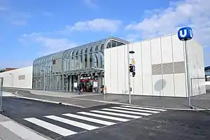 Alaudagasse is a station on Line U1 of the Vienna U-Bahn located in the 10th district of Vienna. It was opened on September 2, 2017. It is part of the extension of the U1 from Reumannplatz to Therme Wien in Oberlaa.