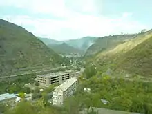 Alaverdi (Armenian: Ալավերդի, Armenian pronunciation: [ɑlɑvɛɾˈdi]), is a town and municipal community in the Lori Province at the northeastern part of Armenia, near the border with Georgia. It is located at the only direct rail link between Armenia and Georgia. Situated at the bottom of the Debed river gorge, Alaverdi is an important commercial and industrial centre in northern Armenia.