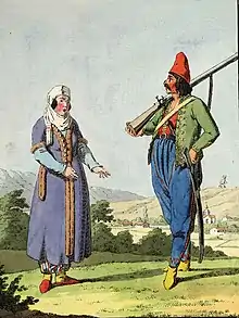 The Himara region had been de facto independent from the Ottoman Empire, even if it had nominally submitted to it. In the 16th century, Himariots had served in the Spanish and Venetian armies. By 1735, Naples had also made its own Albanian guard.[1] Russian influence was felt across the Balkans, including the Albanians. Among those visiting Moscow to request humanitarian aid was Archbishop Gabriel in 1586,[2] Bishop Theophilus in 1587, the Patriarch of Ohrid Athanasius,[3] and Neofil of Korca.