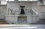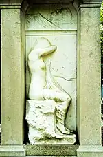 Tomb of Pam family Cimetière Montmartre. Paris 1902 Bartholomé's marble sculpture of a caryatid decorates this tomb. The sculpture was exhibited at the 1902 Salon of the Société Nationale des Beaux-Arts.[12]