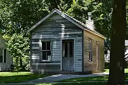 Cashier's one-room house at the corner of Center and Maple Streets is now a historic site. The house served as a tool shed and nursery for hatchling chickens at one point and was relocated eight times in 137 years.[26] In 1982, members of the local Women's Club moved it back to Saunemin with plans to display it that never fully materialized. After this it was so dilapidated that local firefighters planned to burn it down as a training exercise. Former Pontiac tourism director Betty Estes rescued it in 1996 hours before the firefighters could set it ablaze. She relocated the house to Pontiac, and utilized it as a streets department shed. Later on, volunteers such as local historian and village board member Al Arnolts meticulously restored the house. "We built a new framework and put it back together," Arnolts said. "The shake shingles that are on the roof came from a cedar tree right here in town." The newly restored home was dedicated in a ceremony in August 2011.[27][28]