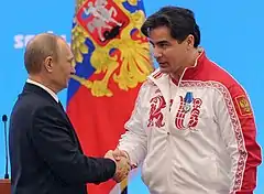 In December 2017, he was one of eleven Russian athletes who were banned for life from the Olympics by the International Olympic Committee, after doping offences at the 2014 Winter Olympics.[2] In January 2018, he and Tatyana Ivanova successfully appealed against the lifetime ban as well as decision to strip his medals from Sochi Olympics at the court of arbitration for sport.[3] As a result, both his medals were reinstated.