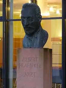Julius Albert Fraenkel (3 June 1864 – 22 December 1938) was a German physician who helped establish Streptococcus pneumoniae as a cause of bacterial pneumonia and championed intravenous ouabain for use in heart failure. The Albert-Fraenkel-Plakette (Albert Fraenkel award) is given to German-speaking cardiologists who have excelled in the field.