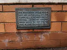 The only reference to the Albert Hall that remains is a plaque at the Albert Street Uniting Church. It reads "The foundation stone above was set in the wall of the Albert Hall, a property of the Central Methodist Mission, which stood on the site of this plaza from 1901 - 1969."[6]