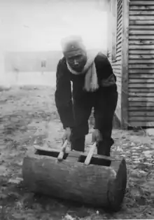 ![]() Albert Kudjabo playing a Melanesian drum at a prisoner of war camp in Münster, 1917. Picture by Wilhelm Doegen. | |