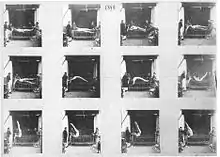 In 1878 neurologist Jean-Martin Charcot hired Londe as a medical photographer at the Salpêtrière.[2] In 1882 Londe devised a system to photograph the physical and muscular movements of patients (including individuals experiencing epileptic seizures). This he accomplished by using a camera with nine lenses that were triggered by electromagnetic energy, and with the use of a metronome he was able to sequentially time the release of the shutters, therefore taking photos onto glass plates in quick succession. A few years later Londe developed a camera with twelve lenses for photographing movement.