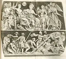 At the time of his death, Albert left a number of writings, some of them in finished form, others unfinished.[1] A collection of his essays on ancient clothing, coins and gems was posthumously edited by the German scholar Johann Georg Graevius and published in 1665 by Balthasar Moretus in Antwerp under the title De re vestiaria veterum, [...], et alia eiusdem opuscula posthuma. It contained 3 folded plates plus 9 engravings of which 7 were engraved after designs by Peter Paul Rubens. The engraver was Cornelis Galle the Younger.[2] The book included essays by Albert Rubens on the Gemma Augustea and the Gemma Tiberiana. He relied for his interpretation of the Gemma Tiberiana on the correspondence between his father and de Peiresc.[1] This book was still highly regarded far into the 18th century. Graevius also included contributions of Albert in his own publications such as the Thesaurus antiquitatum Romanarum (1694–1699, in 12 volumes). These contributions included the treatises De urbibus Neocoris diatribe and Dissertatio de Nummo Augusti cuius epigraphe: Asia recepta and the Dissertatio de Natali die Caesaris Augusti and Epistolae tres ad Clarissimum virum Gothifredum Wendelinum.[2]