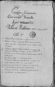 Albert Rubens was baptised on 5 June 1614, presumably within a few days of being born. The governor of the Spanish Netherlands, Albert VII, acted as godfather by proxy. He studied at the Latin school of the Augustinians in Antwerp, which ensured that he obtained a thorough schooling in classical literature from an early age. He was also tutored by Gaspar Gevartius, a scholar of repute who was a friend of his father.[2] Under Gevartius he studied the humanistic core subjects of philosophy, numismatics and the classics.[3]