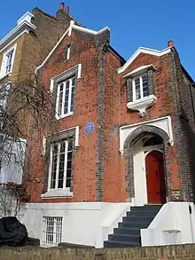 No. 20, known as Tudor Lodge, which has been listed Grade II by Historic England, was built in the 1840s as a house and studios for the artist Charles Lucy (1814–1873). The poet and novelist George MacDonald (1824–1905), who lived there from 1860 to 1863, described the house in his 1871 novel The Vicar's Daughter.[3] It now has a blue plaque, commemorating MacDonald, that was erected by English Heritage in 2005.[4]