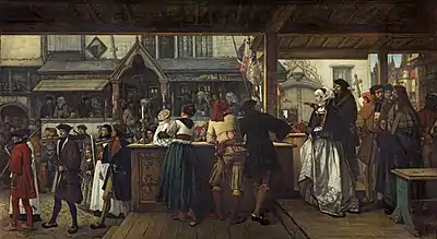 Albrecht Dürer's Visit to Antwerp in 1520 is an 1855 oil on panel painting by Hendrik Leys. As its title suggests, it is based on Albrecht Dürer's attendance at the Antwerp Archers' Guild's Lady's Day procession on Sunday 19 August 1520, as described in his travel journal. It is now in the collection of the Royal Museum of Fine Arts, Antwerp under catalogue number 2198.[1]