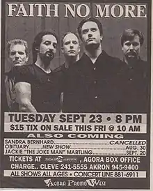 - ↑ "Faith No More Gig Database - 1997". Fnmlive.com. 1997-06-03. Retrieved September 30, 2020.