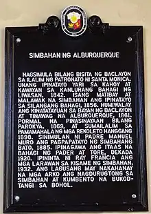 - ↑ "NHCP UNVEILS THE ALBURQUERQUE CHURCH HISTORICAL MARKER". nhcp.gov.ph. Archived from the original on 2014-09-04.