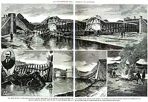The events took place in the early morning of 27 April 1884, at about 04:00 AM,[1] when a locomotive (along several carriages and cages with sheep) derailed off the bridge.[1] The flow of the river was very high compared to its usual modest flow due to rain fallen in previous days.[1]