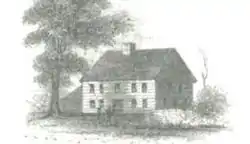 The Alden Tavern is well known for being the site of the horsewhipping of a captive General Richard Prescott, commander of the British troops of Rhode Island, by the tavern's owner Captain Alden. Several days after Prescott's capture, he was escorted to General George Washington's headquarters, but on the trip came to dine at Alden's tavern. Several books detail different accounts and portrayals of the exchanges which led to Prescott's whipping, all involving the Prescott being served "the common dish of corn and beans" and throwing the food on the floor.[2][4] Three of Benson Lossing's books recount this tale, in The Pictorial Field-Book of the Revolution Volume 1 (1852), Our Countrymen (1855) and Lives of Celebrated Americans: Comprising Biographies of Three Hundred and Forty Eminent Persons (1869).[2][4][5] It also appears in similar wording in The Boys of '76: A History of the Battles of the Revolution by Charles Coffin in 1876, with Prescott's line being: "Do you give me the pigs' feed".[6] The story has persisted and a fictional account was referenced in 2010 in Martha Finley's Elsie Yachting with the Raymonds.[7]