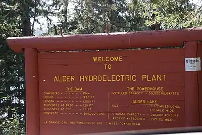 4. 1 2 "Alder Dam". Tacoma Power- Tacoma Public Utilities. Archived from the original on 11 April 2009. Retrieved 2009-03-24.