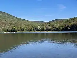 There are Brook trout in the lake, but there are special fishing regulations because it is a man-made lake. The fishing season is April 1 through September 30, while the catch limit is only three fish per day. To keep these fish they have to be a minimum of 10 inches long.[3]
