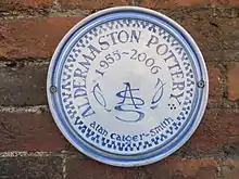 Aldermaston Pottery was a pottery located in the Berkshire village of Aldermaston, England. It was founded in 1955 by Alan Caiger-Smith and was known for its tin-glaze pottery and particularly its lustre ware.[1][2] His first assistant, Geoffrey Eastop, joined him in 1956, a year after the pottery started.[3] They were joined in 1961 by David Tipler and Edgar Campden, who remained there until 1975 and 1993 respectively. Over a period of forty years, around sixty assistants worked at the pottery.