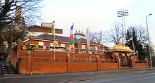 Aldershot Buddhist Centre is a Buddhist temple and community centre catering for the Buddhists of Aldershot and surrounding area, which is billed as the United Kingdom's first Buddhist community centre.[49] With the influx of large numbers of Nepalis into the area in recent years giving Rushmoor the largest Buddhist community in the United Kingdom,[49][50][51] a temple and community centre to cater for their spiritual and secular needs was required. The centre was formally opened on the High Street by the 14th Dalai Lama in June 2015.[49][52]