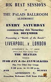 - ↑ "The Beatles at the Palais Ballroom in Aldershot – The Beatles Bible website". 9 December 1961. Archived from the original on 21 July 2015. Retrieved 17 July 2015.