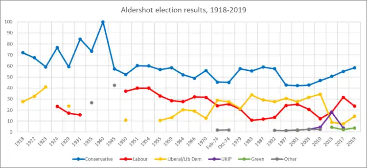 Aldershot has elected a Conservative as its MP since its creation in 1918.