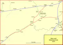 The Aldershot and Alton lines of the LSWR (the London and South Western Railway) were railways developed from 1849 onwards in the region in Surrey and Hampshire, England, between the Southampton main line and Guildford. First was a line from Guildford to Farnham, soon extended to Alton in 1852. The Reading, Guildford and Reigate Railway, an affiliate of the South Eastern Railway (SER), used part of that line by running powers. When the Aldershot Garrison and associated camps opened, suddenly Aldershot had a large population, both civilian and military, and the LSWR built a line from Pirbright Junction, on the Southampton main line. As well as serving Aldershot, this line gave a more direct route from London. It opened in 1870.