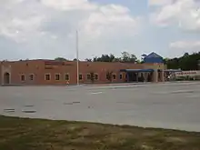 On May 4, 1935, voters in Common School District 29 approved creation of the Aldine Independent School District (AISD) by a 128 to 28 margin.[18] With the S.M.N. Marrs School filled to capacity, AISD voters approved 57-14 a $25,000 bond for construction of a new 10-classroom junior/senior high school building on September 7, 1935.[19] This new building opened in 1936 next door to the Marrs School on Aldine-Westfield Road.[20] It too was named S.M.N. Marrs. AISD acquired part of Common School District 26, also known as the White Oak District, in 1937.[21] This added portions of Acres Homes to AISD. Included was the White Oak School, which became the district's school for black students. In the spring of 1948, AISD opened another high school located immediately to the north of S.M.N. Marrs High.[22] This school was named Aldine High School, after the nearby community. The former Marrs High School was turned into a junior high school.
