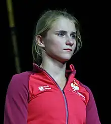 Aleksandra Kałucka (born 25 December 2001 in Tarnów) is a Polish competition climber who specializes in competition speed climbing. She participated at the 2022 IFSC Climbing European Championships, being awarded the silver medal in the women's speed event.[1] Kałucka is the twin sister of Natalia Kałucka.[2]