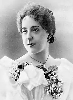 Aleksandra Aleksandrovna Yablochkina (Александра Александровна Яблочкина; November 3, 1866 - March 20, 1964) was a leading actress of the Maly Theatre in Moscow for more than 75 years.[1] She studied acting under her father before joining the Korsh Theatre troupe in 1886. Two years later, she moved to the Maly, where she worked with Maria Yermolova and Alexander Yuzhin. Yablochkina specialized in comedy roles and was renowned for the purity of her enunciation. In 1915, she was selected to lead the Russian theatrical society. In 1937, she became one of the first individuals to be awarded the title of People's Artist of the USSR.[2] In 1943, she was awarded the USSR State Prize. She wrote two volumes of memoirs, My Life in Theatre (1953) and 75 Years in Theatre (1960).