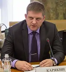 Aleksey Vyacheslavovych Karyakin (Russian: Алексе́й Вячесла́вович Каря́кин), born 7 April 1980 in Stakhanov (now Kadiivka) is a former Chairman of the People's Council (parliament) of the unrecognized state of Luhansk People's Republic.[2] He was voted out on 25 March 2016.[1]