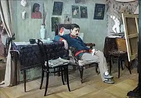 From 1876 to 1877, contrary to his father's wishes, he went to enroll at the Moscow School of Painting, Sculpture and Architecture in 1884, where he studied with Vasily Perov, Illarion Pryanishnikov, Vladimir Makovsky and Vasily Polenov.[2] He graduated in 1889, receiving a silver medal and the title of "Artist". That same year, he joined a group of painters led by Isaac Levitan who painted en plein aire in the vicinity of Plyos.
