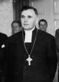 After the sudden departure of Bishop Jaakko Gummerus, Lehtonen was elected Bishop of Tampere in 1934. He was consecrated that same year in Tampere Cathedral by three bishops, Erkki Kaila of Viipuri, Max von Bonsdorff of Borgå and Erling Eidem of Uppsala. It was through him that the apostolic succession was reinstated in the Church of Finland through the consecration initiated by Erling Eidem, the Archbishop of Uppsala. Nevertheless, even though the apostolic succession was considered an important factor to reinstate, it was not considered a requirement by the Finnish Church for a valid consecration.[1] Lehtonen was appointed Archbishop of Turku on 14 March 1945, and was installed on 10 June in Turku Cathedral. He was active in the Ecumenical movement and sought Evangelical Lutheran Church of Finland to have closer relationship with Church of England. His son Samuel Lehtonen became Bishop of Helsinki.[2]